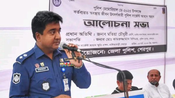 জনাব মোঃ কামরুজ্জামান, বিপিএম, পুলিশ সুপার, শেরপুর মহোদয়ের সভাপতিত্বে অনুষ্ঠানে প্রধান অতিথি হিসেবে মুঠোফোন এর মাধ্যমে ভার্চুয়ালি যুক্ত হয়ে তাঁর স্মৃতির প্রতি গভীর শ্রদ্ধা জানিয়ে স্মৃতিচারণ মূলক বক্তব্য রাখেন জনাব মতিয়া চৌধুরী এমপি, মাননীয় সংসদ উপনেতা, বাংলাদেশ জাতীয় সংসদ।
