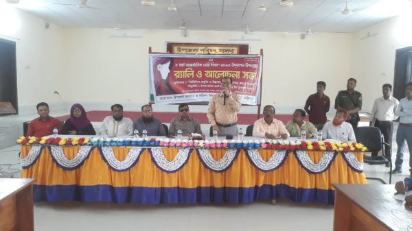 ফরিদপুরের সালথা উপজেলায় যথাযোগ্য মর্যাদায় আন্তর্জাতিক নারী দিবস-২০২৩ পালিত হয়েছে। দিবসটি উদযাপন উপলক্ষ্যে উপজেলা প্রশাসন ও মহিলা বিষয়ক অধিদপ্তরের আয়োজনে বুধবার (৮ মার্চ) সকাল ১১টায় উপজেলা পরিষদ সম্মেলন কক্ষে এক আলোচনা সভা অনুষ্ঠিত হয়। এর আগে উপজেলা পরিষদ চত্বর থেকে একটি র্যালি বের হয়ে উপজেলা সদরের প্রধান প্রধান সড়ক প্রদক্ষিণ করে উপজেলা পরিষদ চত্বরে এসে শেষ হয়। দিবসটির এবারের প্রতিপাদ্য বিষয় ছিলো `ডিজিটাল প্রযুক্তি ও উদ্ভাবন জেন্ডার বৈষম্য করবে নিরসন’।