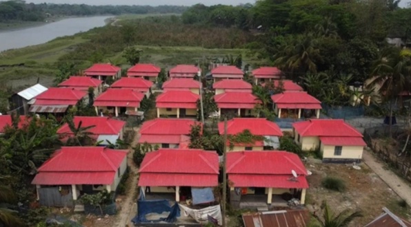 ১৮ মার্চ উপজেলার সদর ইউনিয়নের বোয়ালিয়া এলাকায় গিয়ে দেখা গেল, সেখানে নতুন নির্মাণ করা সারি সারি দাঁড়িয়ে থাকা আধা পাকা ঘরগুলোতে রং লাগানোর কাজ চলছে।