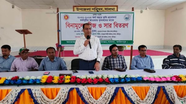 সালথায় কৃষকদের মাঝে বিনামূল্যে ধান বীজ ও সার বিতরণ