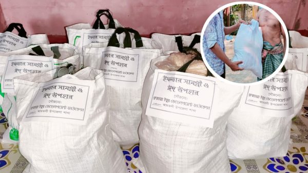 ৩য় রমজান রবিবার বিকেল সাড়ে ৪ টায় ইফতার সামগ্রী ও ঈদ উপহার নিয়ে বিভিন্ন গ্রামের অসহায় মানুষদের বাড়িতে বাড়ি পৌঁছে দেন সদস্য। অসহায় ও দুস্থ পরিবারের মাঝে ইফতার সামগ্রী হিসেবে সোয়াবিন তেল, চিনি, খেজুর, ছোলা বুট, মুড়ি, চিড়া, ট্যাংক, ভুষি বিতরণ করা হয়।