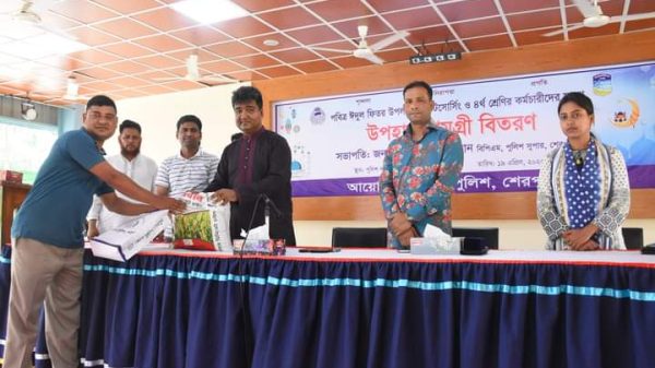 আসন্ন পবিত্র ঈদুল ফিতর উপলক্ষে আউটসোর্সিং ও চতুর্থ শ্রেণির কর্মচারীদের মাঝে অনাবিল ঈদ আনন্দ ছড়িয়ে দিতে শেরপুর জেলা পুলিশের উদ্যোগে ঈদ উপহার সামগ্রী বিতরণ করা হয়েছে।