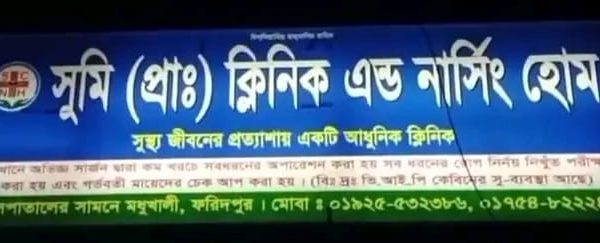 ক্লিনিক ও বিভিন্ন সুত্রে জানাগেছে উপজেলার বাগাট ইউনিয়নের মিটাইন গ্রামের মোঃ মনিরুল শেখের স্ত্রী রত্না বেগম সন্তান প্রসববেদনা নিয়ে মধুখালী পৌর সদরে অবস্থিত সুমী (প্রাঃ) ক্লিনিক এন্ড নার্সিং হোমে তার স্বজনেরা নিয়ে আসেন। ঐদিন ১৩ এপ্রিল রাত সাড়ে ১১টায় নির্ধারিত ডাক্তার মাসুদুল হক (৪৩২১৪) সিজার করেন। প্রসূতী একটি ছেলে সন্তান জন্ম দেন। বাচ্চার অবস্থা আশংকাজন হওয়ায় ডাক্তার তাকে ফরিদপুরে শিশু হাসপাতালে পাঠিয়ে দেন। রত্না বেগম সুমী ক্লিনিকে ৩/৪দিন চিকিৎসা নিয়ে সুস্থ হয়ে উপজেলার রায়পুর ইউনিয়নের মোঃ মোফাজ্জে শেখ বাবার বাড়ী ছকড়িকান্দী গ্রামে যান। বাবার বাড়ী ২/১দিন অবস্থান করার পর ফরিদপুর শিশু হাসপাতালে যান এবং সেখানে ৩/৪ দিন অবস্থান করার পর হটাৎ অতিরিক্ত রক্তক্ষণ শুরু হলে শিশু হাসপাতালের ডাক্তার রত্নাকে দ্রুত ফরিদপুর বঙ্গবন্ধু শেখ মুজিব মেডিকেল কলেজ হাসপাতলে পাঠান।সেখানে তার শাশীরিক অবস্থার আরো অবনতি হলে ডাক্তার তাকে উন্নত চিকিৎসার জন্য ঢাকা মেডিকেল কলেজ হাসপাতালে প্রেরন করেন। সেখানে তাকে দ্রুত অপারেশন করা হয়। জরুরী অবস্থায় আইসিইউ প্রয়োজন হওয়ায় এবং ঢাকা মেডিকেল কলেজ হাসপাতালে আইসিইউর ব্যবস্থা না পাওয়ায় তাকে দ্রুত যমুনা জেনারেল হাসপাতালের আইসিইউতে ভর্তি করা হয় এবং ২৫ এপ্রিল ২০২৩ খ্রিঃ সেখানে তার মৃত্যৃ হয়। প্রসূতী রত্না