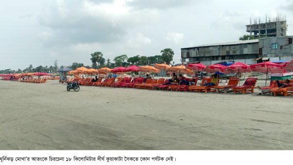 স্থানীয় বাসিন্দা ও জেলেরা জানায়, কুয়াকাটা সংলগ্ন বঙ্গোপসাগর স্বাভাবিকের চেয়ে উত্তাল রয়েছে। গভীর সমুদ্রে মাছ ধরা বন্ধ রেখে জেলেরা ট্রলার নিয়ে মৎস্যবন্দর মহিপুর ও আলীপুর আড়ৎ ঘাটসহ বিভিন্ন পয়েন্টে আশ্রয়ের জন্য নোঙর করে রেখেছে। এদিকে রবিবার দুপুরে সৈকত এলাকা ঘুরে দেখা গেছে, চিরচেনা ১৮ কিলোমিটার দীর্ঘ কুয়াকাটা সৈকতে নেই কোন পর্যটক। অল্প কিছু লোকের দেখা মিললেও তারা হচ্ছে মূলত স্থানীয়, ট্যুরিস্ট পুলিশ ও বিভিন্ন গনমাধ্যমকর্মী।