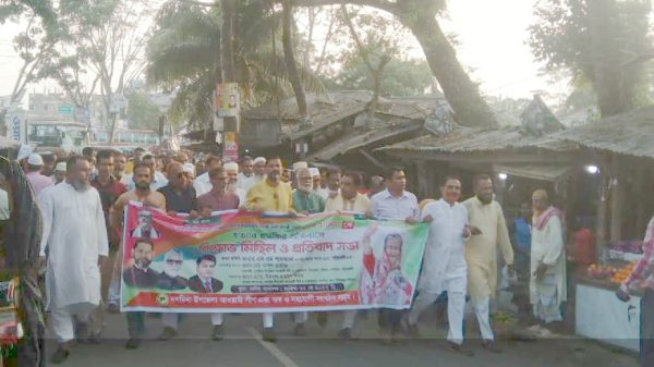 প্রধানমন্ত্রীকে হত্যার হুমকির প্রতিবাদে বিক্ষোভ মিছিল ও প্রতিবাদ সভা