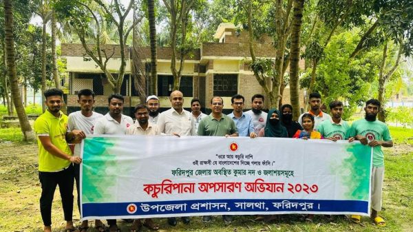 ও‌রে আয় কচু‌রি না‌শি ঐ রাক্ষসী যে বাংলা‌দে‌শের দি‌চ্ছে গলায় ফা‌ঁসি এই প্রতিপাদ‌্য বিষয়‌কে সাম‌নে রে‌খে ফ‌রিদপু‌রের সালথায় কচু‌রিপানা অপসারণ অ‌ভিযা‌নের উ‌দ্বোধন করা হ‌য়ে‌ছে। উপ‌জেলা প্রশাসন সালথা এর আয়োজ‌নে শ‌নিবার (১৭ জুন) সকাল ১০টায় সালথা থানা চত্ব‌রে অব‌স্থিত পুকু‌রে এই অ‌ভিযা‌নের উ‌দ্বোধন করা হয়। কচু‌রিপানা অপসারণ অ‌ভিযা‌নে বাংলা‌দেশ রেড ক্রিসেন্ট সোসাই‌টি সালথা ইউ‌নিট, সালথা ব্লাড ডোনার ক্লাব, শা‌ন্তির আহ্বান ও ইয়থ লিডারশিপ ফাউ‌ন্ডেশন সহ প্রায় শতা‌ধিক সেচ্চা‌সে‌বী অংশগ্রহণ ক‌রে।