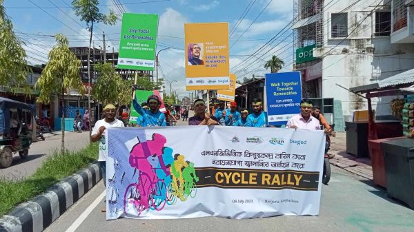 মোঃ শাজনুস শরীফ বরগুনা প্রতিনিধিঃ “এলএনজিভিত্তিক বিদ্যুৎকেন্দ্র বাতিল করো, নবায়নযোগ্য জ্বালানিতে অর্থায়ন করো”,স্লোগানে আজ শনিবার ০৮ জুলাই, ২০২৩ বরগুনায় এক সাইকেল র্যালি অনুষ্ঠিত হয়।