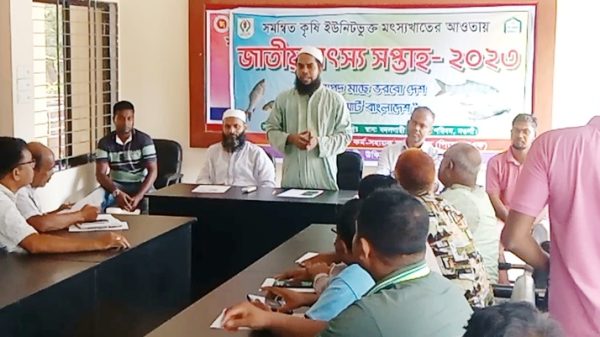 তিনি আরো জানান, সপ্তাহব্যাপী সভা-সেমিনার, বিভিন্ন জলাশয়ে মাছের পোনা অবমুক্ত করণ, পুকুরের পানি ও মাটি পরীক্ষা, পরামর্শ প্রদান, প্রশিক্ষণ প্রদান, বিভিন্ন উপকরণ বিতরণ এবং সফল মৎস্য চাষীদের পুরস্কার প্রদান করা হবে। সুষ্ঠুভাবে এসকল প্রেগ্রাম সফল করার জন্য সকলের সার্বিক সহযোগিতা কামনা করেন উপজেলা মৎস্য কর্মকর্তা আব্দুস সালাম। এছাড়াও মতবিনিময় সভা সমন্বিত কৃষি ইউনিটভুক্ত মৎস্যখাতের আওতায় পল্লী কর্ম-সহায়ক ফাউন্ডেশন (পিকেএসএফ) মৌসুমী এর পক্ষ থেকে বক্তব্য রাখেন মৎস্য কর্মকর্তা শাহরিয়া হোসেন সহ সাংবাদিকবৃন্দ।