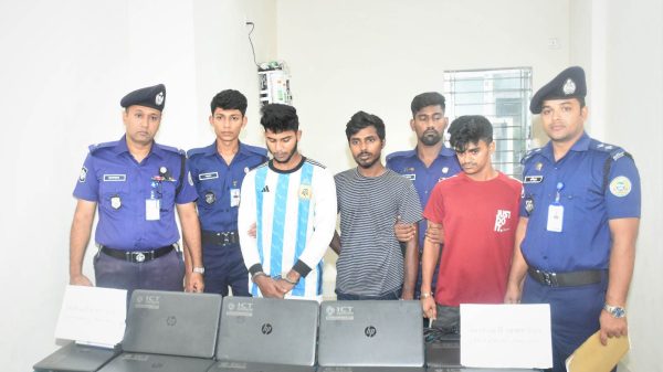 বরিশাল জেলার গৌরনদী থানাধীন শেখ রাসেল ডিজিটাল ল্যাব হতে চুরি যাওয়া ৯টি ল্যাপটপ উদ্ধার ও আন্তঃজেলা চোরচক্রের ৩ সদস্য গ্রেফতার।গৌরনদী থানাধীন কাশেমাবাদ এলাকার কাশেমাবাদ সিদ্দিকিয়া কামিল মাদ্রসার মূল ভবনের ২য় তলায় শেখ রাসেল ডিজিটাল ল্যাব হইতে ০৯টি ল্যাপটপ চুরির ঘটনায় মাদ্রাসার অধ্যক্ষ জনাব আবু সাঈদ মোঃ কামেল(৫৪), পিতা- মৃত আবুল খায়ের মোঃ সাইদ, সাং- কাশেমাবাদ, থানা- গৌরনদী, জেলা- বরিশাল বাদি হয়ে থানায় এজাহার দায়ের করলে উক্ত ঘটনায় অজ্ঞাতনামা আসামীদের বিরুদ্ধে গৌরনদী মডেল থানার মামলা নং-১০, তারিখ-০৬/০৮/২০২৩, ধারা -৪৫৭/৩৮০ পেনাল কোড রুজু হয়। পুলিশ সুপার বরিশালের সার্বিক দিক নির্দেশনায় তাৎক্ষনিক ভাবে গৌরনদী মডেল থানার অফিসার ইনচার্জের নেতৃত্বে এস আই মজিবুর রহমান সঙ্গীয় ফোর্স সহ গৌরনদী থানার বিভিন্ন এলাকায় সঁড়াশি অভিযান পরিচালনা করে। অভিযানের একপর্যায়ে গোপন সংবাদের ভিত্তিতে ইং ০৬/০৮/২০৩ তারিখ ১৪.৫০ ঘটিকায় গৌরনদী থানার কাশেমাবাদ এলাকা হইতে আসামী সিয়াম আহম্মেদ (২০), পিতা-আলাউদ্দিন বয়াতী, সাং-কাশেমাবাদ, থানা-গৌরনদী, জেলা-বরিশালকে গ্রেফতার করে তার নিকট হইতে ০৬ টি HP ল্যাপটপ এবং গৌরনদী থানাধীন দক্ষিন বিজয়পুর এলাকা হতে আসামী রেজাউল শরীফ (২৮), পিতা-নাছির শরীফ, সাং-দক্ষিন বিজয়পুর, থানা-গৌরনদী, জেলা-বরিশাল এবং পার্থ রায় (২৩), পিতা-মৃত টমাস রায়, সাং-কলাবাড়িয়া, থানা-গৌরনদী,জেলা-বরিশালদ্বয়কে গ্রেফতার করে তাদের নিকট হতে ইং ০৬/০৮/২০২৩ তারিখ ১৫.৩৫ ঘটিকায় ০৩ টি HP ল্যাপটপ উদ্ধার করা হয়। আসামীরা আন্তজেলা চোর চক্রের সদস্য বলে প্রাথমিক জিঞ্জাসাবাদে জানা যায়। তারা দীর্ঘদিন যাবৎ বিভিন্ন সরকারী প্রতিষ্ঠানের ল্যাপটপ চুরি করে মর্মে জানা যায়। মামলার তদন্ত চলমান রয়েছে। গৌরনদী মডেল থানার অফিসার ইনচার্জ মোঃ আফজাল হোসেন আজকের ক্রাইম নিউজের প্রতিনিধি বি এম মনির হোসেনকে জানান বরিশাল পুলিশ সুপার স্যারের নির্দেশনায় সকল প্রকার অপরাধের বিরুদ্ধে অভিযান অব্যহত রয়েছে।