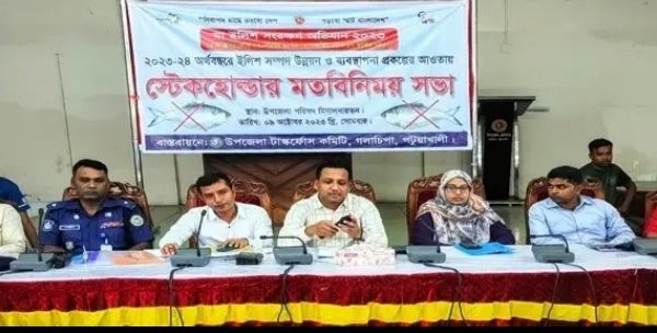 পটুয়াখালীর গলাচিপায় ইলিশ সম্পদ উন্নয়ন ও ব্যবস্থাপনা প্রকল্পের আওতায় টাস্কর্ফোস কমিটির সভা অনুষ্ঠিত হয়েছে। সোমবার (৯ অক্টোবর) বেলা ১১টায় উপজেলা পরিষদ মিলনায়তনে উপজেলা টাস্কর্ফোস কমিটির বাস্তবায়নে ও উপজেলা মৎস্য অধিদপ্তর কতৃক আয়োজিত সভায় “নিরাপদ মাছে ভরবো দেশ, গড়বো স্মার্ট বাংলাদেশ”-এই প্রতিপাদ্যের আলোকে উপজেলা মৎস্য অধিদপ্তর কতৃক মা ইলিশ সংরক্ষণ অভিযান ২০২৩ উপলক্ষে ইলিশ সম্পদ উন্নয়নে উপজেলা টাস্কর্ফোস কমিটির সভা ও স্টেক হোল্ডার মতবিনিময় সভা অনুষ্ঠিত হয়। সহকারী কমিশনার (ভূমি) মো. নাছিম রেজা এর সভাপতিত্বে ও উপজেলা সিনিয়র মৎস্য কর্মকর্তা মো. জহিরুন্নবী এর সঞ্চালনায় মা ইলিশ সংরক্ষণ অভিযান ২০২৩ টাস্কর্ফোস কমিটির সভায় উপস্থিত ছিলেন উপজেলা কৃষি অফিসার আরজু আক্তার, উপজেলা প্রানী সম্পদ কর্মকর্তা ডা. সজল দাস, গলাচিপা থানা অফিসার ইনচার্জ (ওসি) শোনিত কুমার গায়েণ, প্রেসক্লাব সভাপতি সমিত কুমার দত্ত মলয়, সিনিয়র সাংবাদিক খালিদ হোসেন মিলটন, সোহাগ রহমান, দৈনিক বাংলাদেশ বুলেটিনের উপজেলা প্রতিনিধি সঞ্জিব দাসসহ বিভিন্ন সরকারি, বেসরকারি, এনজিও প্রতিনিধি ও গণমাধ্যমকর্মীবৃন্দ। উল্লেখ থাকে যে, মা ইলিশ সংরক্ষণ অভিযান ২০২৩, ১২ অক্টোবর হতে ২ নভেম্বর ২০২৩ পর্যন্ত সরকার ঘোষিত এই ২২ দিন সারাদেশে ইলিশ আহরণ,পরিবহন, মজুদ, বাজারজাতকরণ, ক্রয় বিক্রয় ও বিনিময় সম্পূর্ণভাবে নিষিদ্ধ এবং দ-নীয় অপরাধ। তাই সকল মৎসজীবীদেরকে এই ২২ দিন মা ইলিশ ধরা থেকে বিরত থাকার জন্য প্রতিটি ইউনিয়নে মাইকিং করে জানানো হয় এবং এই কদিন নদী সহ সাগরে অভিযান ও মোবাইল কোর্ট অব্যহত থাকবে বলে সভায় জানানো হয়। এছাড়াও সভায় উপস্থিত সকলের মতামত প্রকাশ ও সরকারি বিধিমালা অনুযায়ী এ আইন অমান্যকারীকে কমপক্ষে ১ বছর থেকে সর্বোচ্চ ২ বছর সশ্রম কারাদ- অথবা পাঁচ হাজার টাকা পর্যন্ত জরিমানা অথবা উভয় দন্ডে দন্ডিত করা হবে বলে জানান।