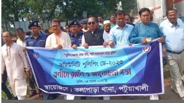 পটুয়াখালীর কলাপাড়ায় কমিউনিটি পুলিশিং ডে পালিত “পুলিশ জনতা ঐক্য করি,স্মার্ট বাংলাদেশ গড়ে তুলি” এই স্লোগানে পটুয়াখালীর কলাপাড়ায় পালিত হয়েছে এ বছরের কমউিনিটি পুলিশিং ডে। এ উপলক্ষে শনিবার দুপুরে কলাপাড়া থানার আয়োজনে একটি র্যালি বের হয়ে শহরের প্রধান প্রধান সড়ক প্রদক্ষিণ শেষে থানা মিলানায়তনে আলোচনা সভায় মিলিত হয়।