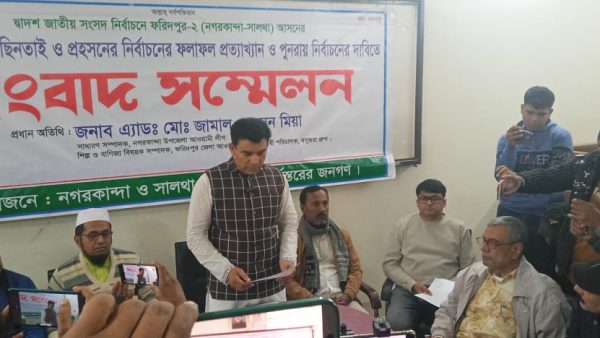 প্রহসনের নির্বাচন, কারচুপির নির্বাচন ও ব্যালট ছিনতাই এর নির্বাচন নগরকান্দা, সালথা বাসী, প্রত্যাখ্যান করেছেন, এই ফলাফল আমরা মানিনা । আমার ঈগলের অনেক ভোট নষ্ট দেখানো হয়েছে। আমি ভোটে জিতেছি আমাকে জোর পূর্বক ১৯০০ ভোটে পরাজয় দেখানো হয়েছে নির্বাচনের একদিন যেতে না যেতে নগরকান্দা সালথা আমার সমর্থক দের প্রায় ২০০ বাড়ি ঘর দোকান পাট ভাংচুর ও অগ্নি সংযোগ অনেক ব্যাবসা প্রতিষ্ঠান দখল করে নিয়েছে, আমার নেতাকর্মীর উপরে নির্মম ও নির্যাতন হামলা চালানো হচ্ছে আমি এর তীব্র নিন্দা ও প্রতিবাদ জানাই, এবং সেই সাথে দোষীদের গ্রেফতার করে আইনের আওতায় আনার জন্য অনুরোধ জানাই, এবং যে সকল কেন্দ্রে অনিয়ম ভোট চুরি ব্যালট ছিনতাই জাল ভোট প্রদান প্রকাশ্যে নৌকা প্রতিকে ছিল মারা, মৃত ব্যাক্তি ও প্রবাসিদের ভোট গণনা করা হয়েছে। সেই সব কেন্দ্রের ভোট বাতিল করে পূর্ণ নির্বাচন দেয়ার জন্য জোর দাবি জানান।