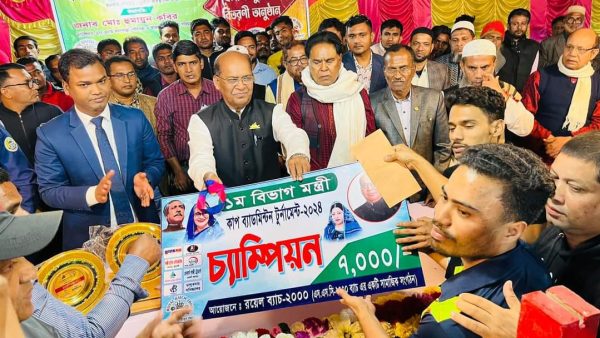 পটুয়াখালীর কলাপাড়ায় মন্ত্রীকাপ ১ম বিভাগ ব্যাডমিন্টন টুর্নামেন্টের ফাইনাল খেলা অনুষ্ঠিত হয়েছে। বৃহস্পতিবার(৭ জানুয়ারী) রাতে দুর্যোগ ব্যবস্থাপনা ও ত্রাণ মন্ত্রণালয়ের প্রতিমন্ত্রী অধ্যক্ষ মোঃ মহিববুর রহমান এমপি বিজয়ী দল রিপোর্টার্স ক্লাবের হাতে ট্রফি সহ ৭ হাজার টাকার প্রাইজ মানি এবং রানার্সআপ দল টুটুল-মেহেদি জুটির হাতে ট্রফিসহ ৫ হাজার টাকার প্রাইজ মানি তুলে দেন। রয়েল ব্যাচ ২০০০ এর আয়োজনে ফাইনাল খেলায় বিশেষ অতিথি হিসেবে উপস্থিত ছিলেন কলাপাড়া ইউএনও মোঃ জাহাঙ্গীর হোসেন, উপজেলা আওয়ামী লীগের সাধারণ সম্পাদক বীর মুক্তিযোদ্ধা আব্দুল মোতালেব তালুকদার, যুগ্ম সম্পাদক অধ্যক্ষ মঞ্জুরুল আলম, কলাপাড়া থানার ওসি মো আলী আহম্মেদ,পৌরসভার প্যানেল মেয়র ও টূর্নামেন্ট পরিচালনা কমিটির আহ্বায়ক মোঃ হুমায়ুন কবির প্রমূখ।