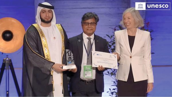 শুক্রবার (৪ অক্টোবর) ইউনেস্কোর প্রধান কার্যালয়ে বিশ্ব শিক্ষক দিবস এবং ইউনেস্কো-হামদান পুরস্কার বিতরণ অনুষ্ঠানে এ পুরস্কার তুলে দেওয়া হয়। জিএনবি’র পক্ষে সম্মানজনক এই পুরস্কার গ্রহণ করেন সংস্থাটির কান্ট্রি ডিরেক্টর এম মাঈনউদ্দিন মইনুল।
